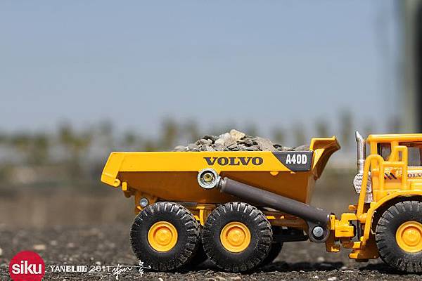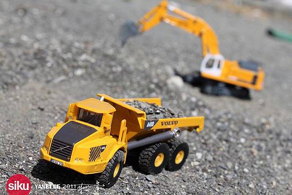 由Volvo A40D Dumper ( Siku 1877 )砂石自卸車將砂石載運到別處